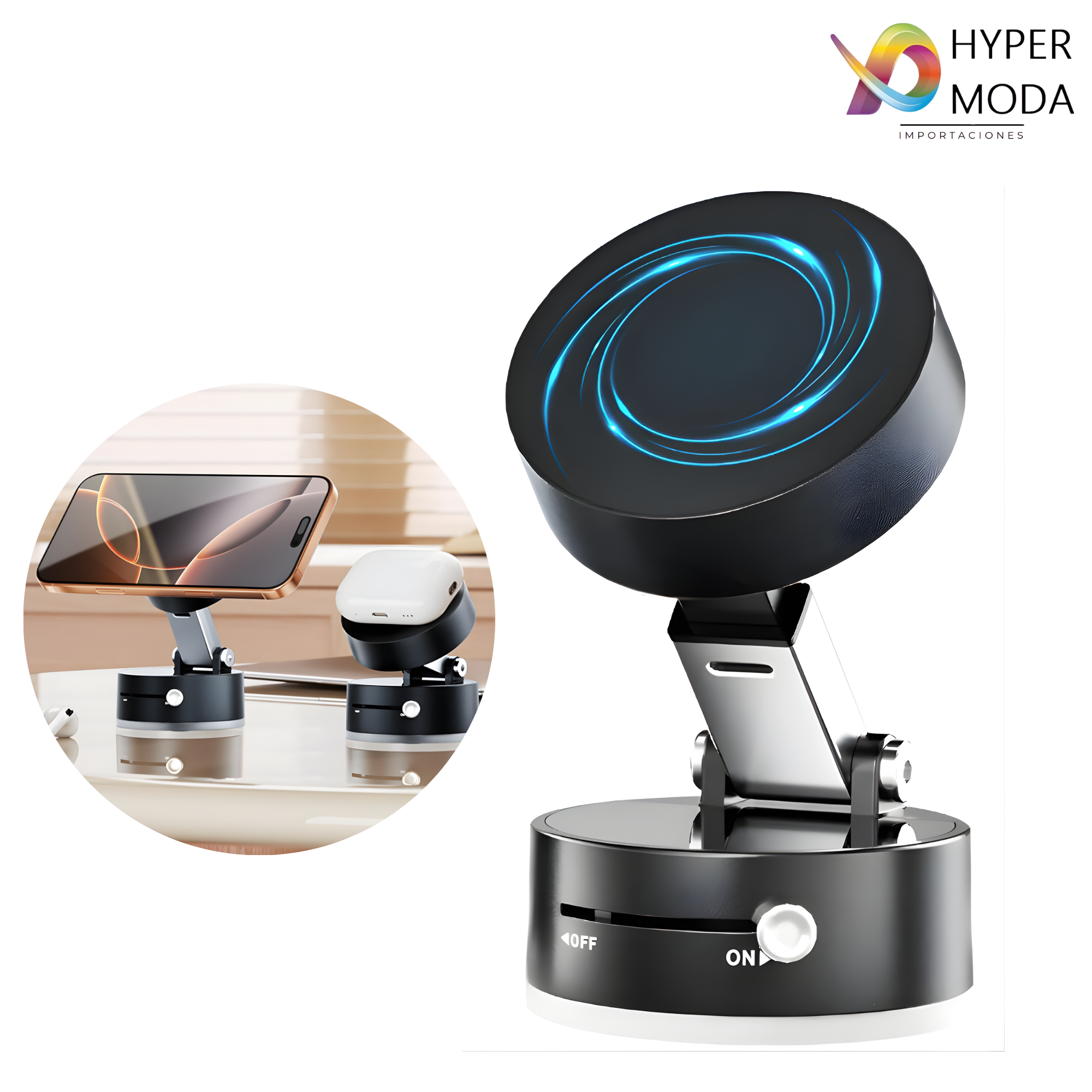 El Soporte Magnético con Ventosa Ajustable es la solución práctica y moderna para mantener tu teléfono firme y visible en todo momento.